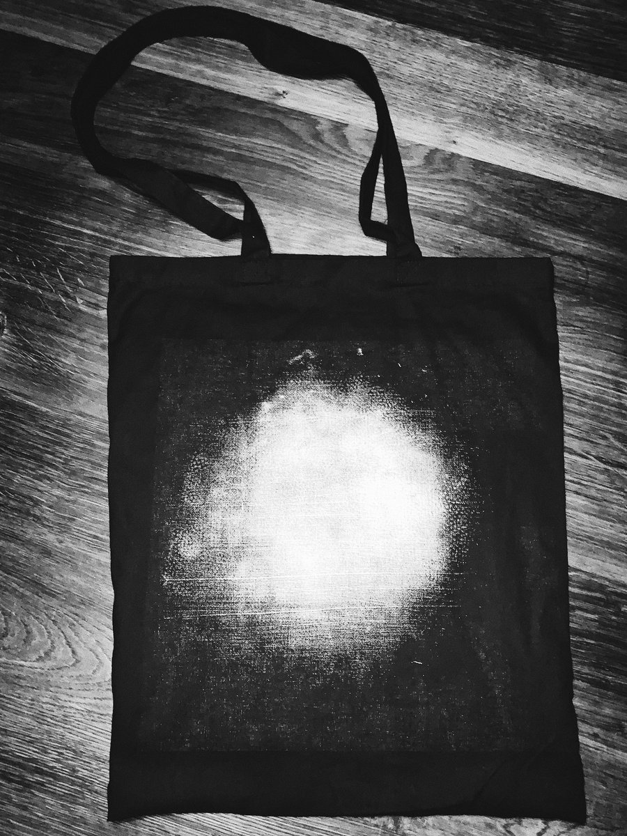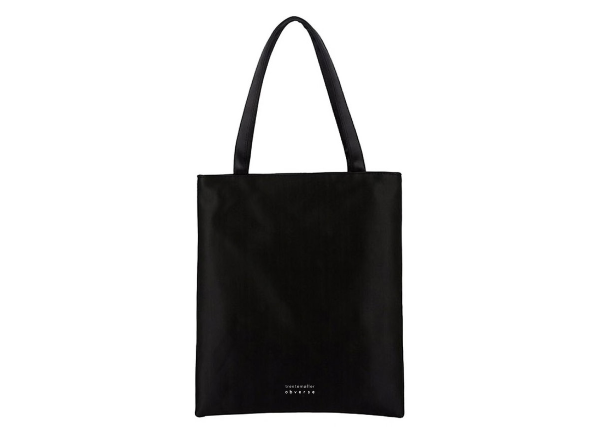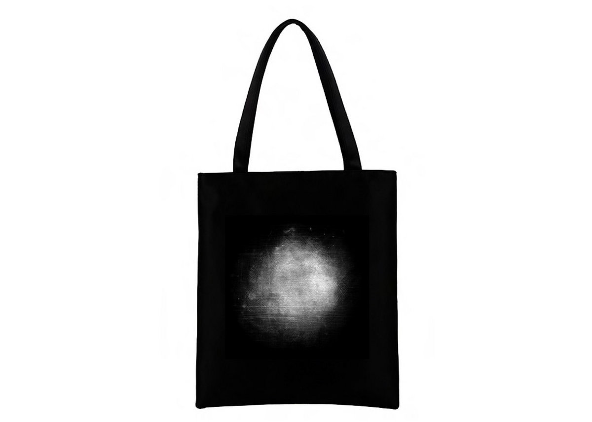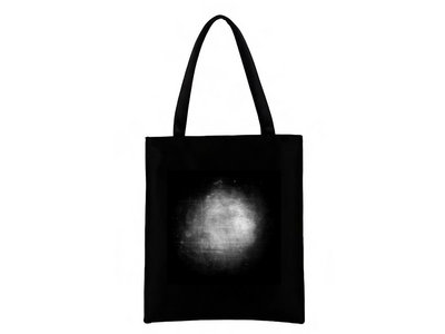 Black cotton tote bag with prints on front and back